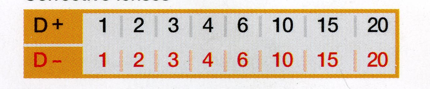 - Vòng hội tụ với các thấu kính hiệu chỉnh từ 0 đến +20, và từ 0 đến -20 điôp